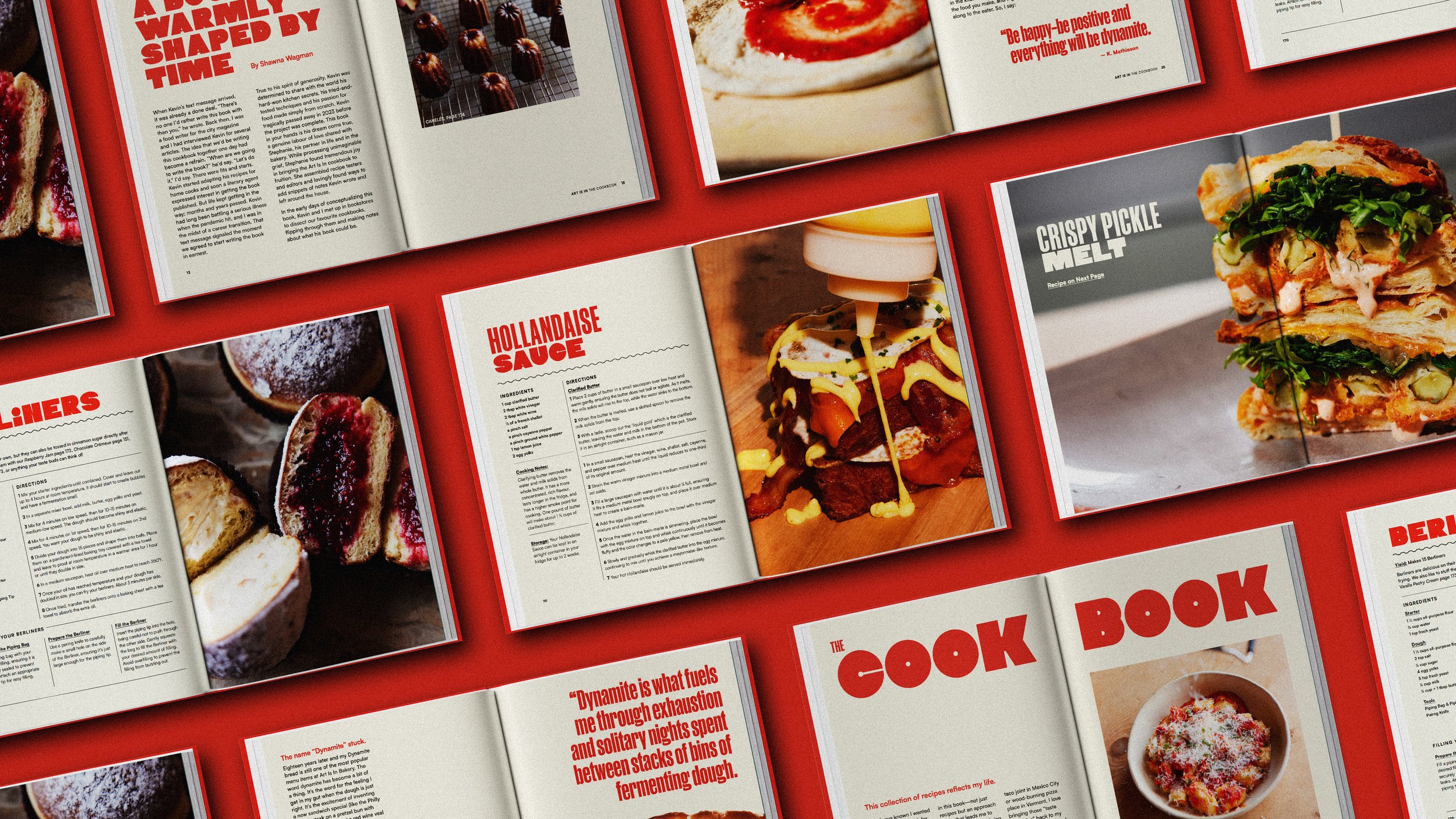 We partnered with the family of acclaimed chef Kevin Mathieson to design and produce a 200-page cookbook that honours both his legacy and unmistakable culinary voice. Our studio led the full creative direction, translating highly detailed recipes into a format that feels as engaging as it is functional. Inspired by his bold approach to cooking, we decided on using the minimal red white and black palette, paired with experimental, expressive typography and layouts that imbue a sense of play. The result is a book that balances precision with personalityβinfused with a sense of energy and creative freedom that mirrors the spirit of his life work.
